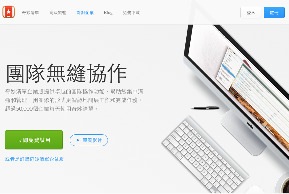 奇妙清單是一個雲端記事本的工具,有點類似Evernote,但是沒有那麼多功能,主要是利用列表來記錄待辦事項等等。這一類型的服務工具,首要工作就是吸引使用者的使用,有足夠的使用者試用後,才能在推銷更進階付費服務。